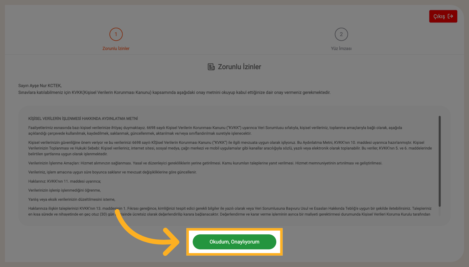 Aydınlatma metnini okuyup onaylayın.