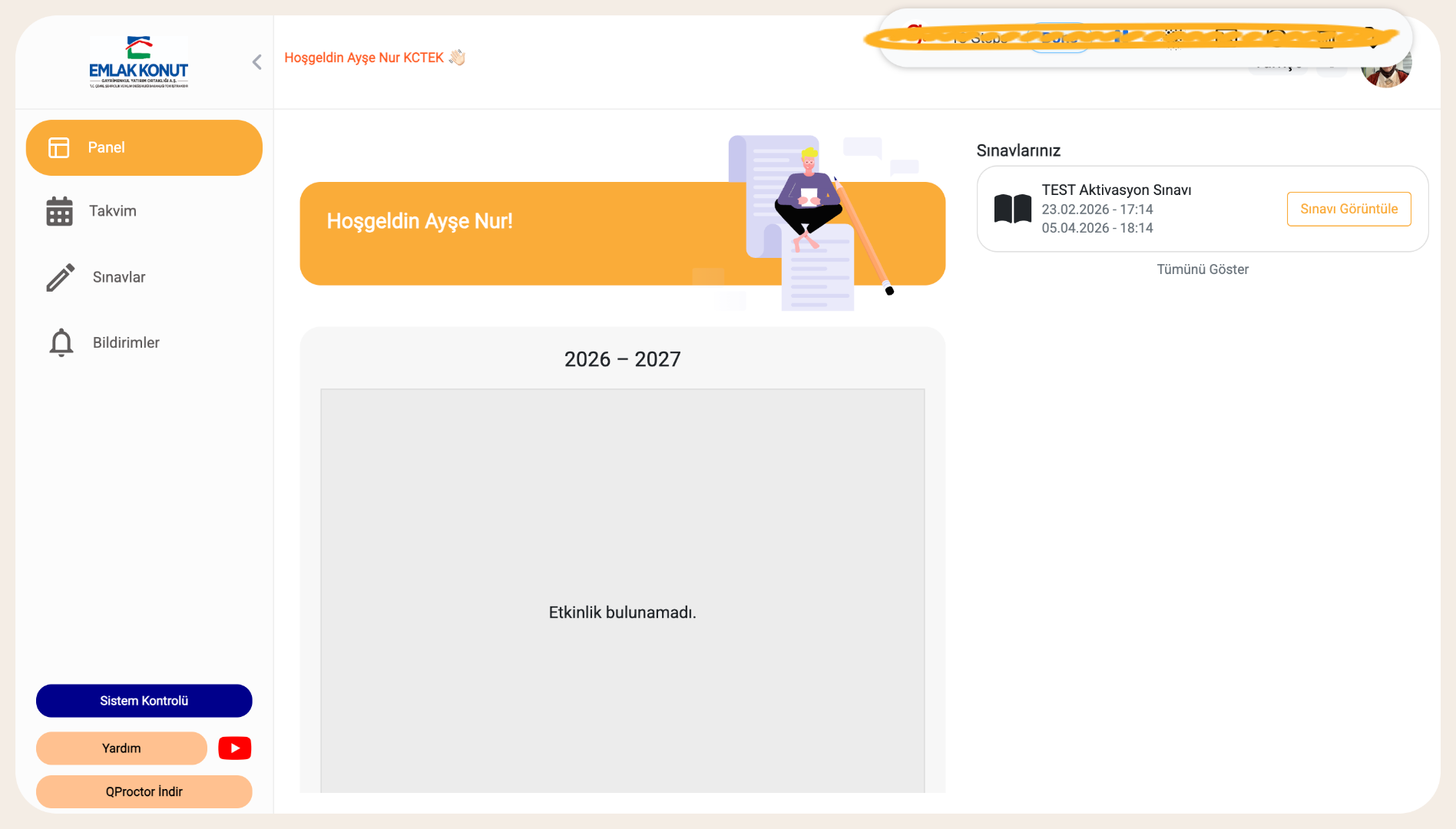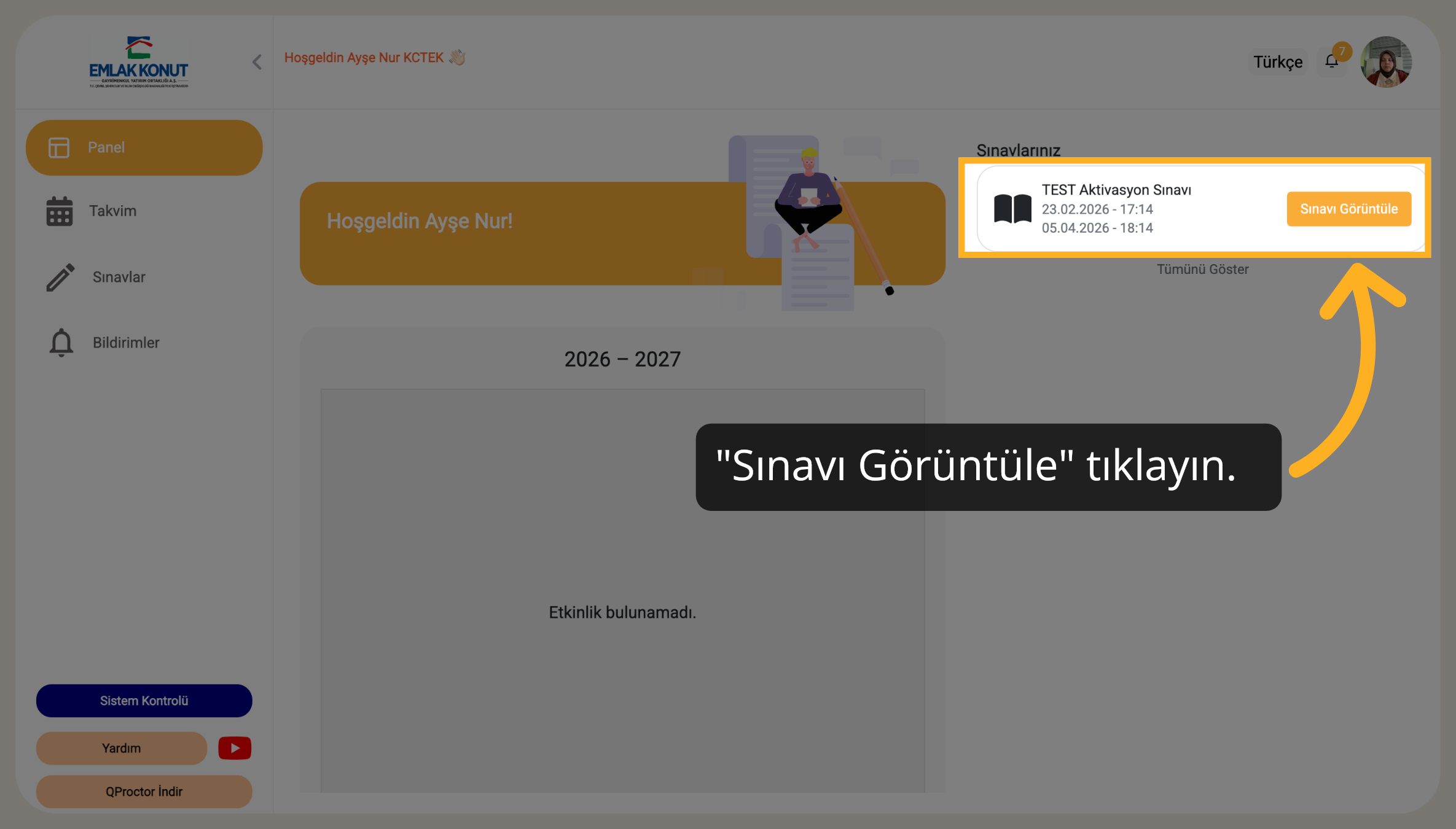 Sınavlarınız listesinden ilgili sınavı bulun.