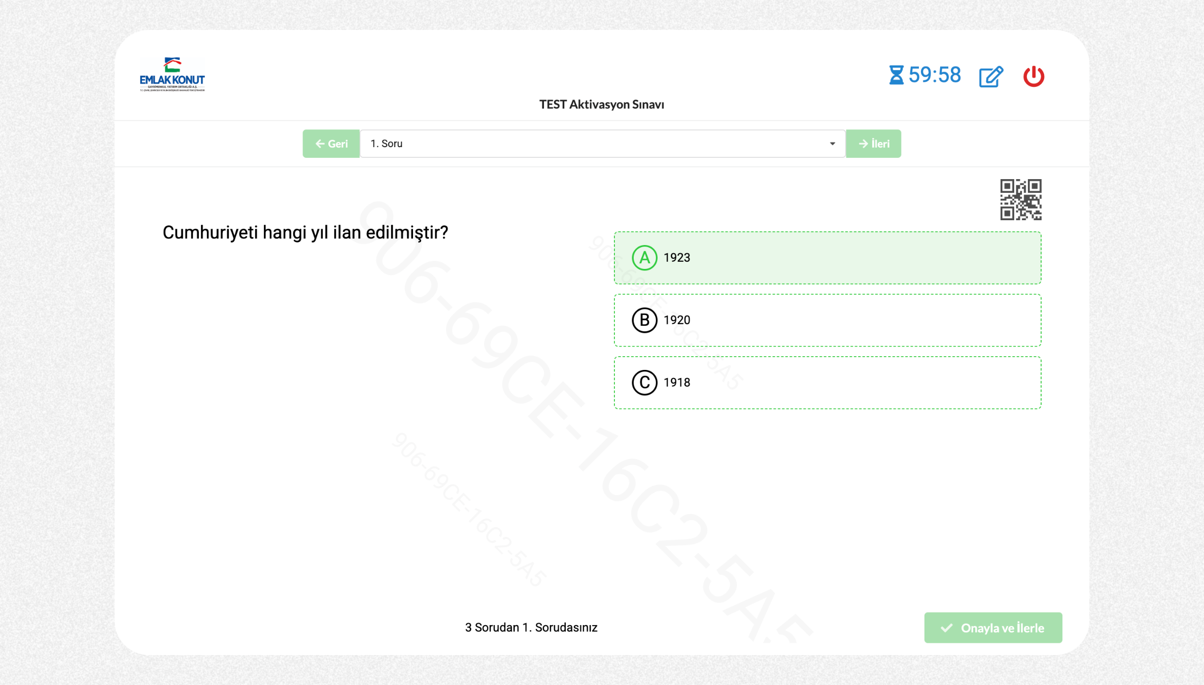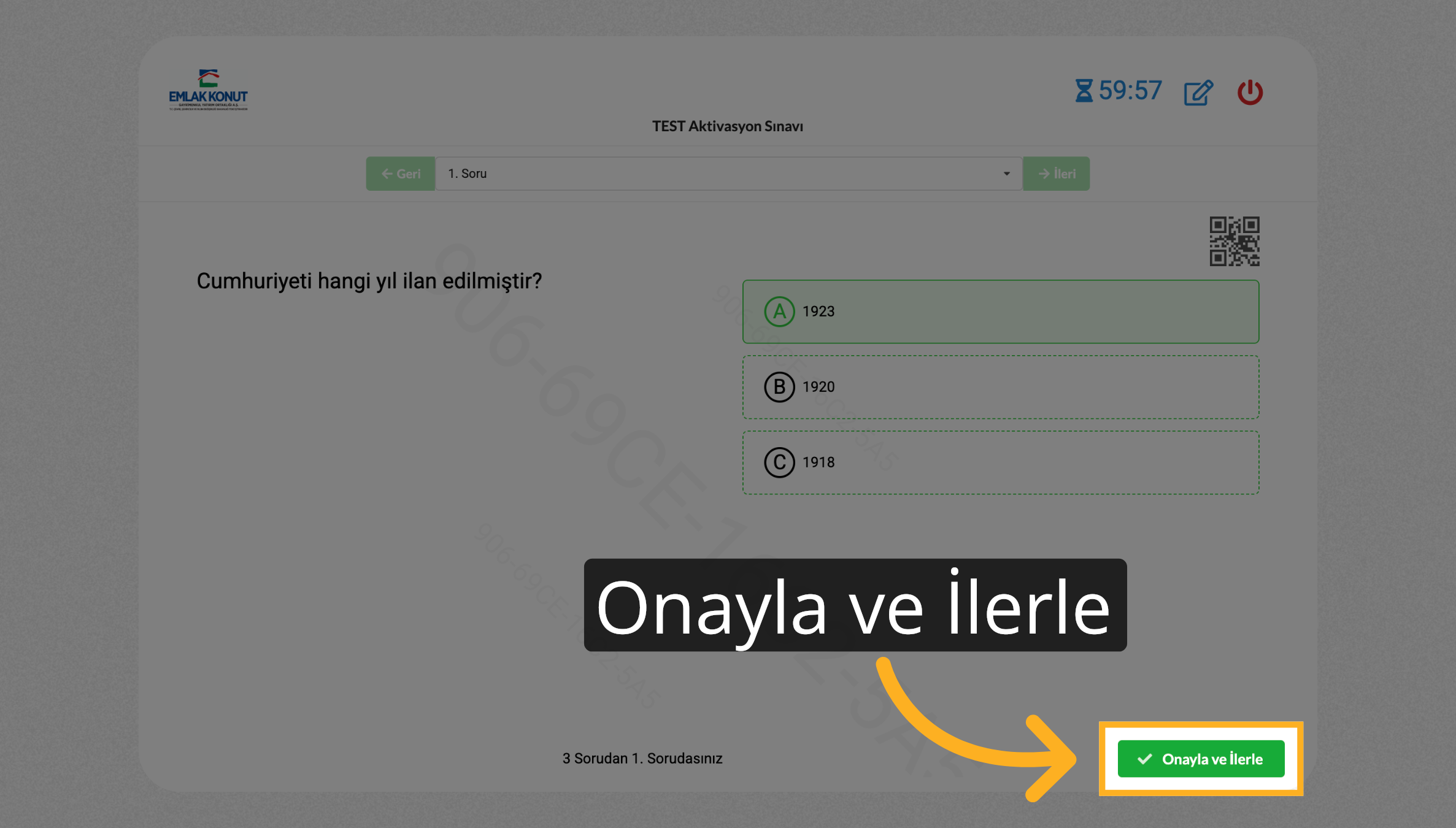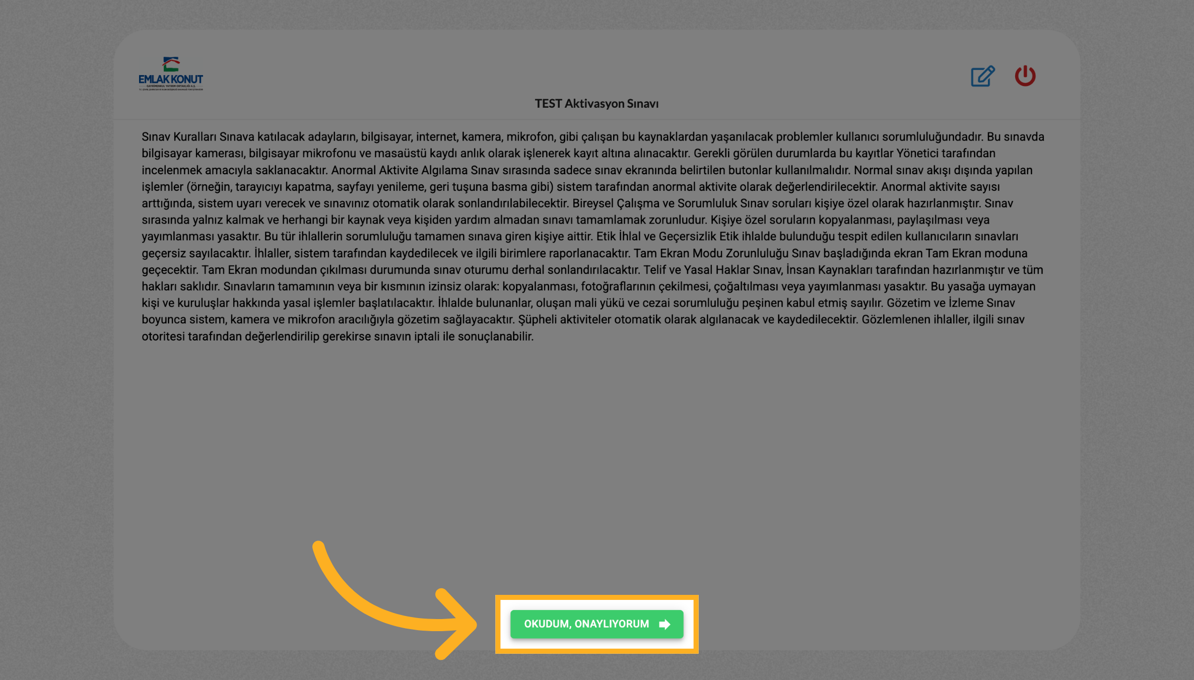 Sınav kurallarını onaylayın.