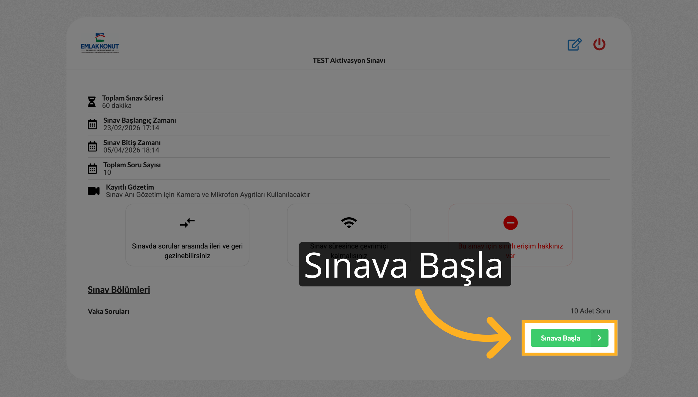 "Sınavı Başlat" butonuna tıklayın.