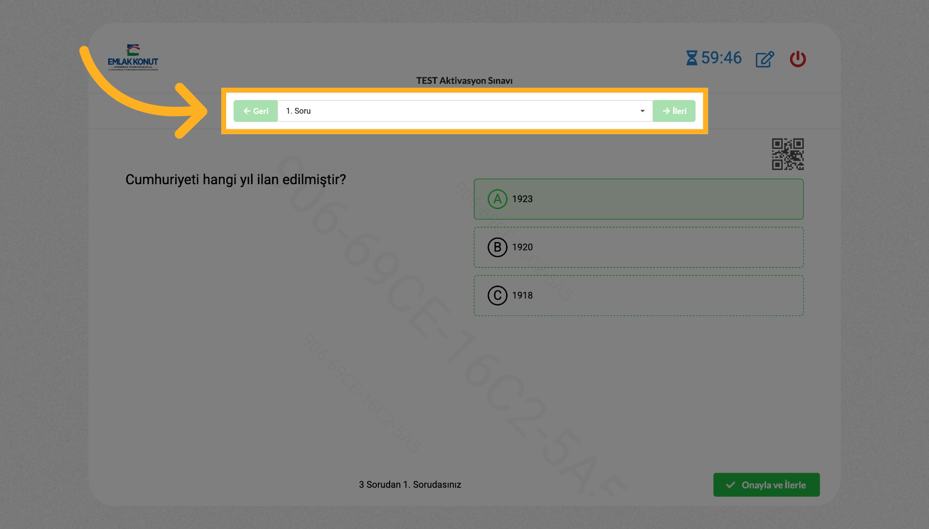 İleri/Geri butonlarını kullanarak sorular arasında gezinin.